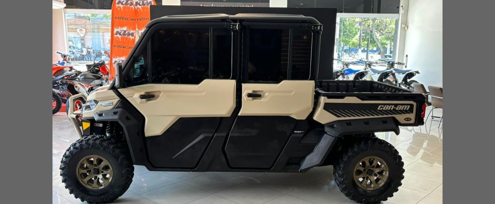Can-Am Defender MAX Limited HD10, ano 2024. Um UTV focado em trabalho, mas com muito conforto, para até 6 ocupantes. Equipado com um valente motor ACE de 976 cc e 82 hp, generosa caçamba de carga basculante, cabine fechada, ar condicionado/aquecedor, para-brisa basculante, barra de som, guincho, rodas de liga-leve, além de muito mais. Unidade com apenas 479 horas/11.638 km de uso! Não perca esta oportunidade!