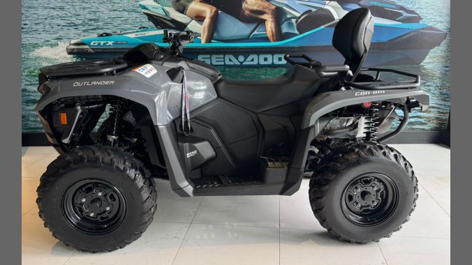 Quadriciclo Can-Am Outlander Max DPS 500, ano 2024, em excelente estado e com apenas 112.9 horas/2.273 km de uso. Equipado com motor ACE de 650 cc com 40 hp, Direção Dinâmica Assistida (DPS), rack dianteiro e traseiro, além de muito mais! Venha ver de perto!