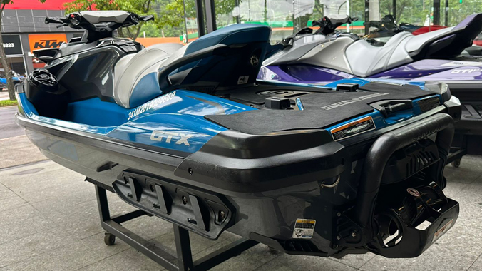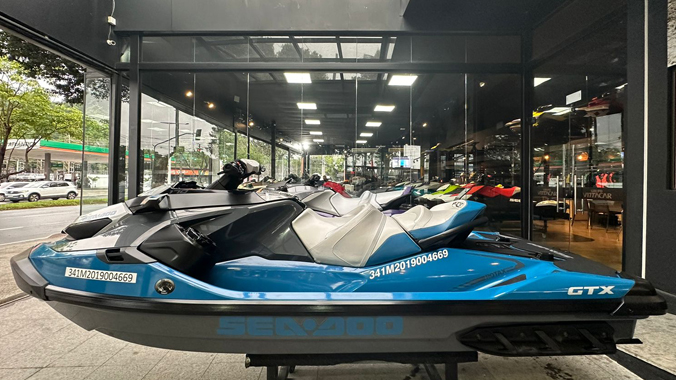 Moto aquática Sea-Doo GTX 170, modelo 2020, com 133 horas de uso. Equipada com motor Rotax 1630 ACE de 170 hp, sistema iBR de freio e reverso inteligentes, sistema de som Bluetooth, escada de reembarque, e muito mais! Embarcação revisada e em excelente estado. Venha ver de perto e feche um excelente negócio!