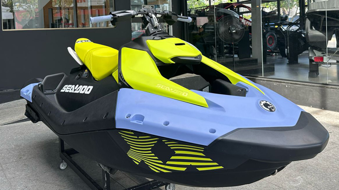 Jet ski Sea-Doo Spark Trixx 3Up, ano 2024, em excelente estado e com apenas 9 horas de uso! Uma moto aquática prática para usar, transportar e guardar. Equipado com motor 900 ACE de 90 HP, guidão com regulagem de altura, cunhas para os pés, sistema de engate LinQ, além de muito mais! Não perca esta oportunidade!