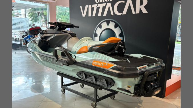 Moto aquática Sea-Doo Wake Pro 230, ano 2021/2022. Equipada com motor Rotax 1.630 ACE de 230 hp, sistema iBR de freio e reverso inteligentes, suporte para prancha de wakeboard, torre de esqui, escada de reembarque, sistema de som Bluetooth e muito mais! Embarcação em excelente estado, com apenas 116 horas de uso! Venha ver de perto e feche um excelente negócio!