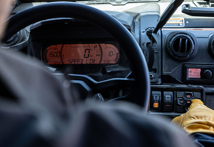 O Defender MAX Limited HD11 2026 equipado com um sistema de climatização automático (HVAC) é a opção perfeita e mais confortável de garantir que até 6 pessoas possam trabalhar ou passear, não importando as condições externas. Sua potente motorização HD11 com 95 HP, a transmissão CVT com Sistema de Resposta Rápida (QRS-X) com alto fluxo de ar e os modos Turf /2WD/4WD selecionáveis com o exclusivo diferencial Smart-Lok completam o pacote, proporcionando a melhor experiência de pilotagem em todo tipo de terreno.